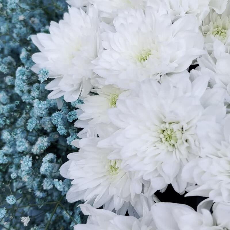 Воздушный ,нежный авторский букет с гипсофилой и кустовой игольчатой хризантемой в нашей фирменной дизайнерской упаковке В этом букете очень стойкие цветочки которые будут вас очень долго радовать,не забывайте менять воду раз в 2 дня и подрезать их ❤️