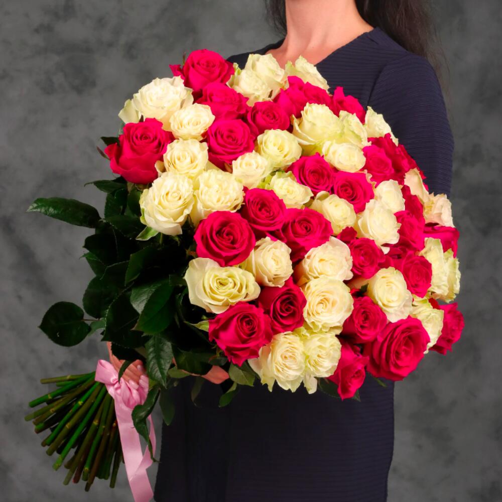 Букет 55 белых и розовых роз в Саках